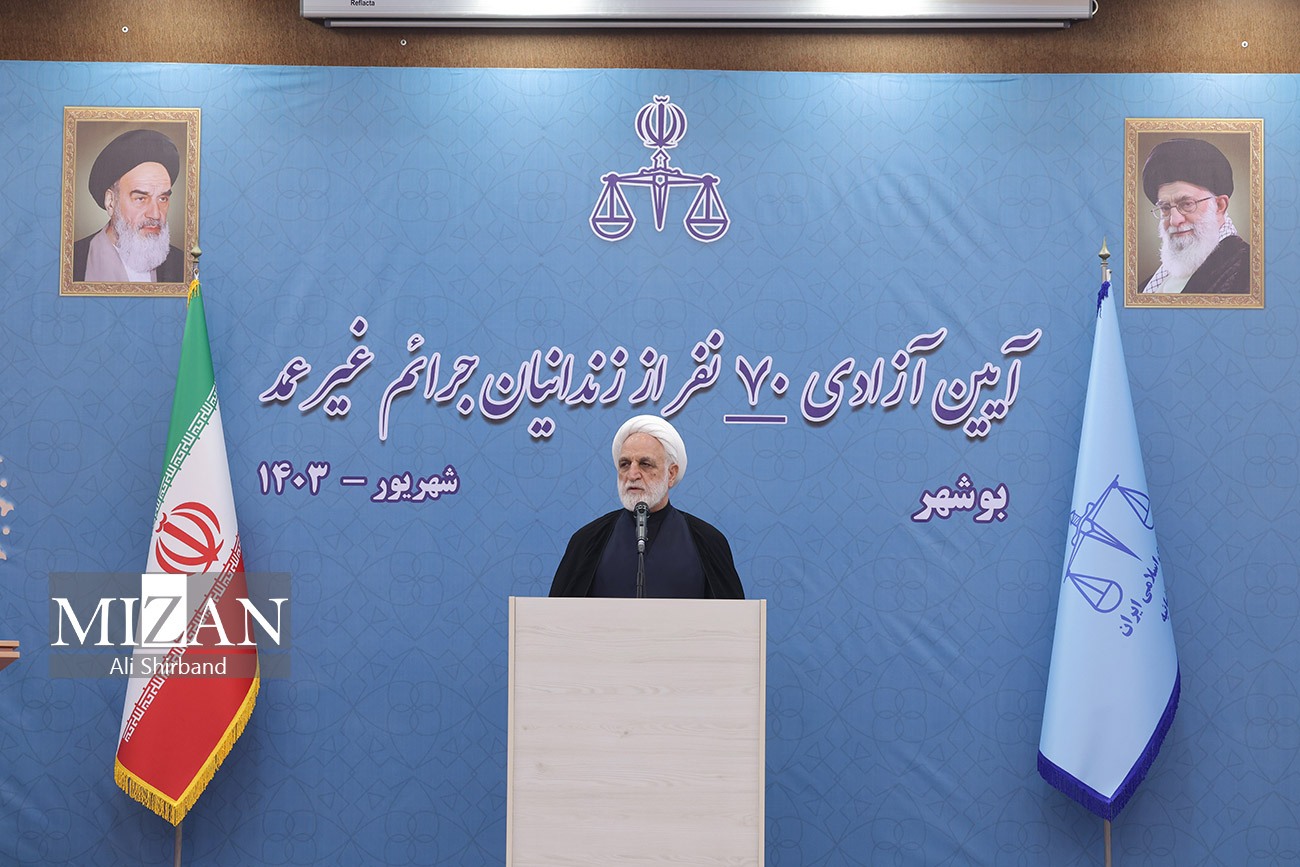رئیس دستگاه قضا: جایگاه و شأن قوه قضاییه و قضات و کارکنان قضایی در نزد عموم مردم مهم و خطیر است/ آزادی ۷۰ نفر از زندانیان جرایم غیرعمد استان بوشهر و رهایی از قصاص ۵ نفر از محکومان با تلاشهای مسئولان قضایی و خیّرین