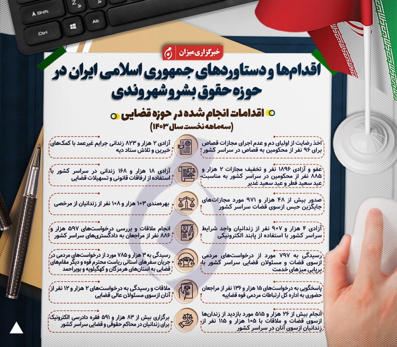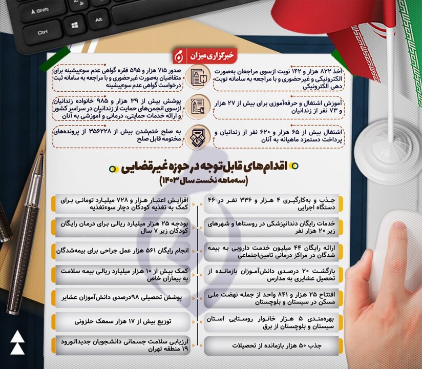 اینفوگرافیک | اقدام‌ها و دستاوردهای جمهوری اسلامی ایران در حوزه حقوق بشر شهروندی در ۳ ماهه نخست سال ۱۴۰۳