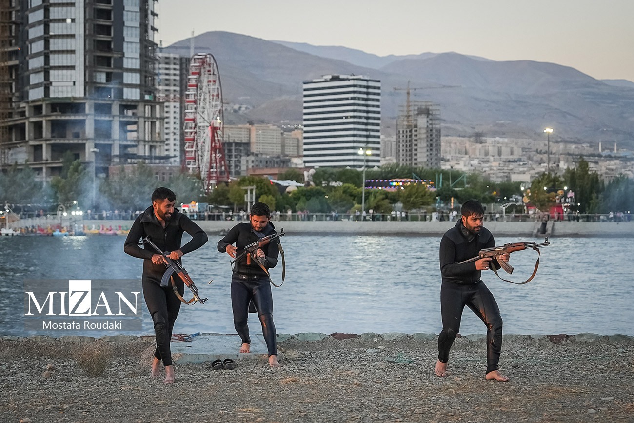 بهمناسبت هفته دفاع مقدس رزمایش آبی خاکی شبیهسازی عملیات والفجر ۸ عصر روز چهارشنبه (۴ مهر ۱۴۰۳) در دریاچه شهدای خلیج فارس تهران (چیتگر) برگزار شد.