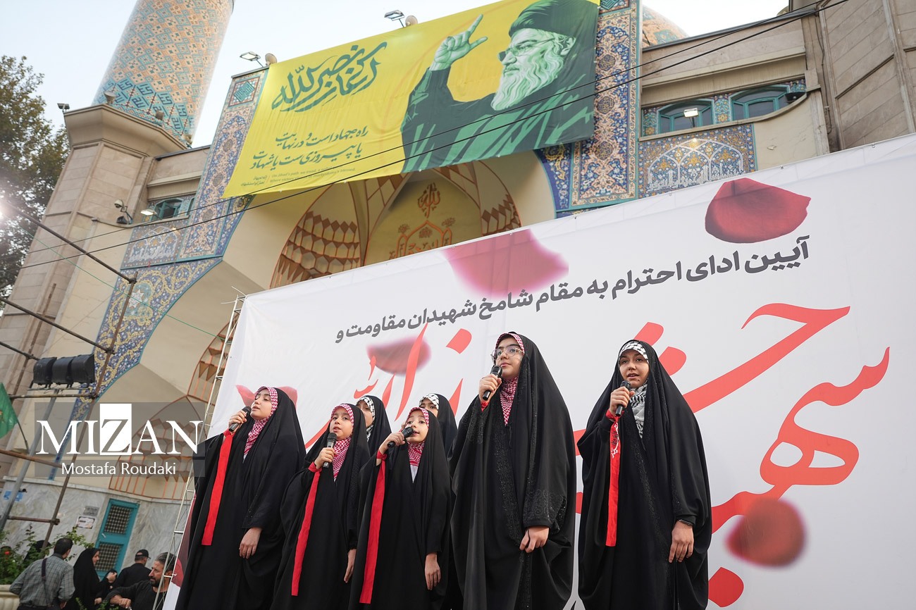مراسم ادای احترام به شهدای مقاومت و سید مقاومت شهید سید حسن نصرالله با حضور گروههای مختلف مردمی در میدان فلسطین برگزار شد.