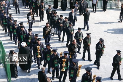عاشقان و ارادتمندان اهل بیت به همراه خادمان بارگاه حضرت فاطمه معصومه (س) در قالب دسته عزا، از مسجد امام حسن عسکری (ع) تا حرم مطهر کریمه اهل بیت به اقامه عزا پرداختند.