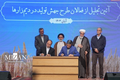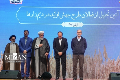 مراسم تجلیل از فعالان طرح جهش تولید در دیم‌زارها، صبح دوشنبه (۱۴ آبان ۱۴۰۳) با حضور «مسعود پزشکیان» رئیس‌جمهور و حجت الاسلام «محمد محمدی گلپایگانی» رئیس دفتر مقام معظم رهبری در وزارت جهاد کشاورزی برگزار شد.