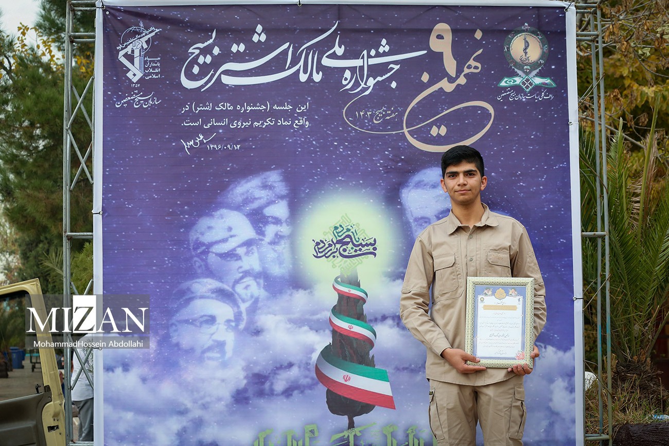 نهمین جشنواره ملی مالک اشتر دوشنبه (۵ آذر ۱۴۰۳) به مناسبت هفته بسیج با حضور سردار غلامرضا سلیمانی فرمانده سازمان بسیج مستضفین و جمعی از فرماندهان لشکری در سازمان بسیج برگزار شد.