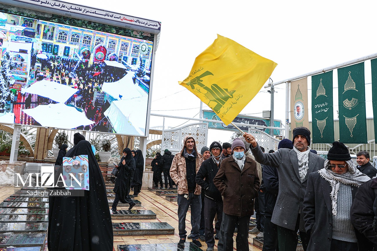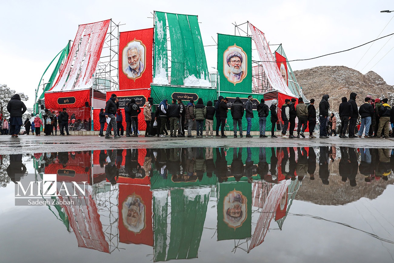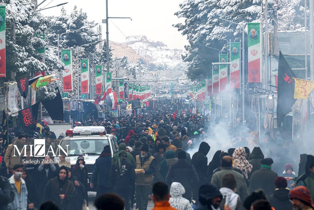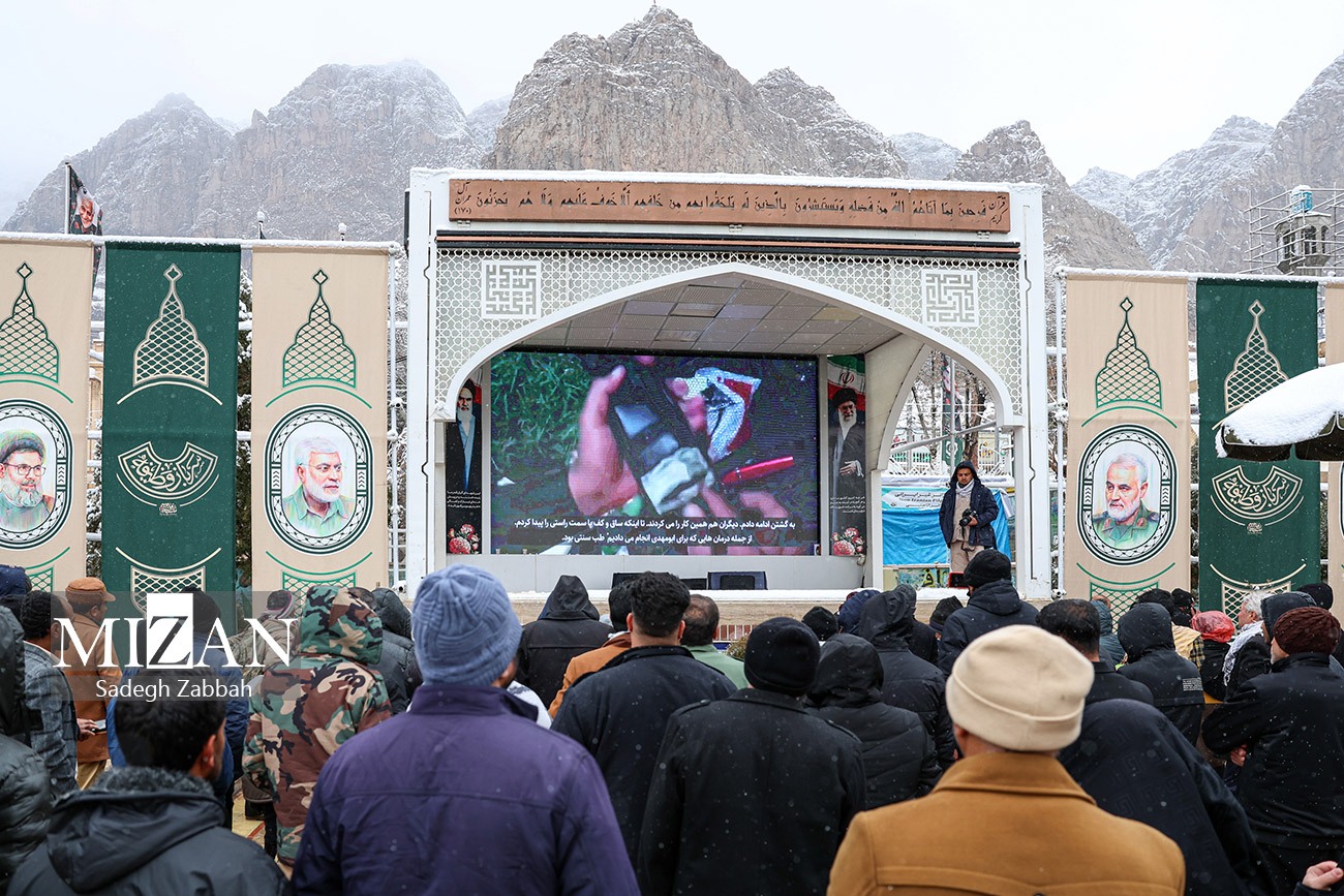 مراسم پنجمین سالروز شهادت سردار شهید حاج قاسم سلیمانی، پنجشنبه (۱۳ دی ۱۴۰۳) با حضور پیاده دهها هزار نفر از زائرانش در هوای برفی مسیر گلزار شهدای کرمان برگزار شد.