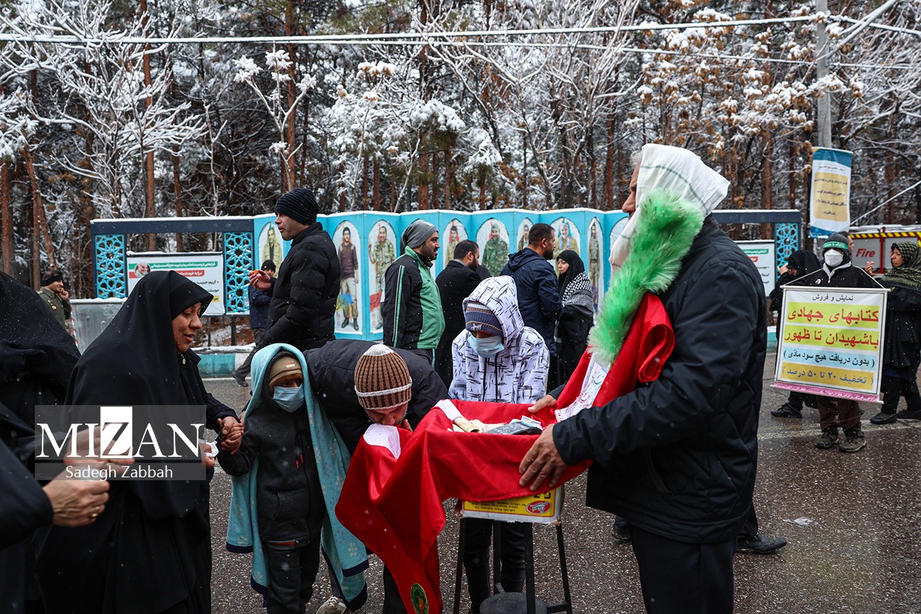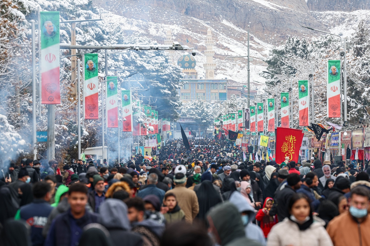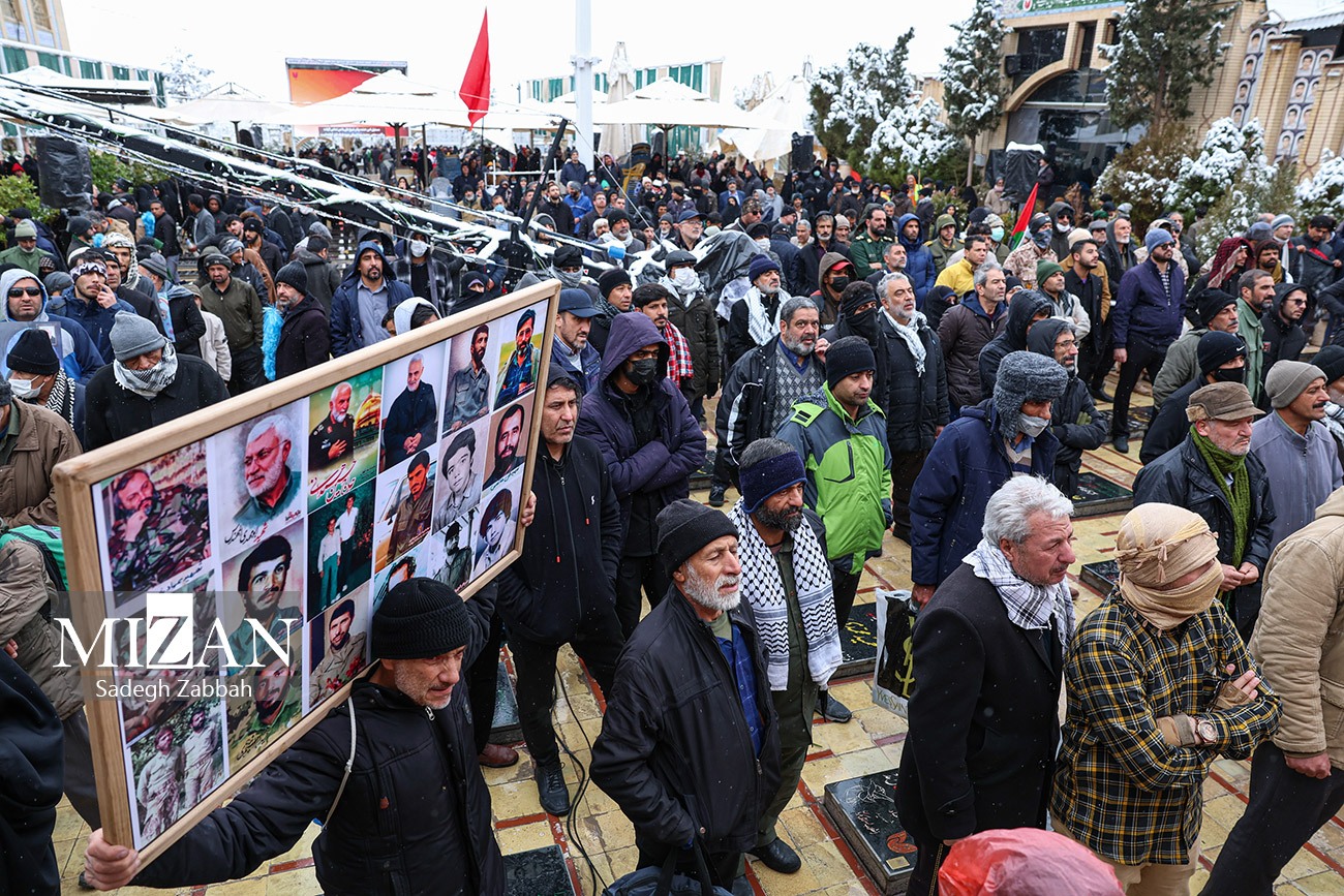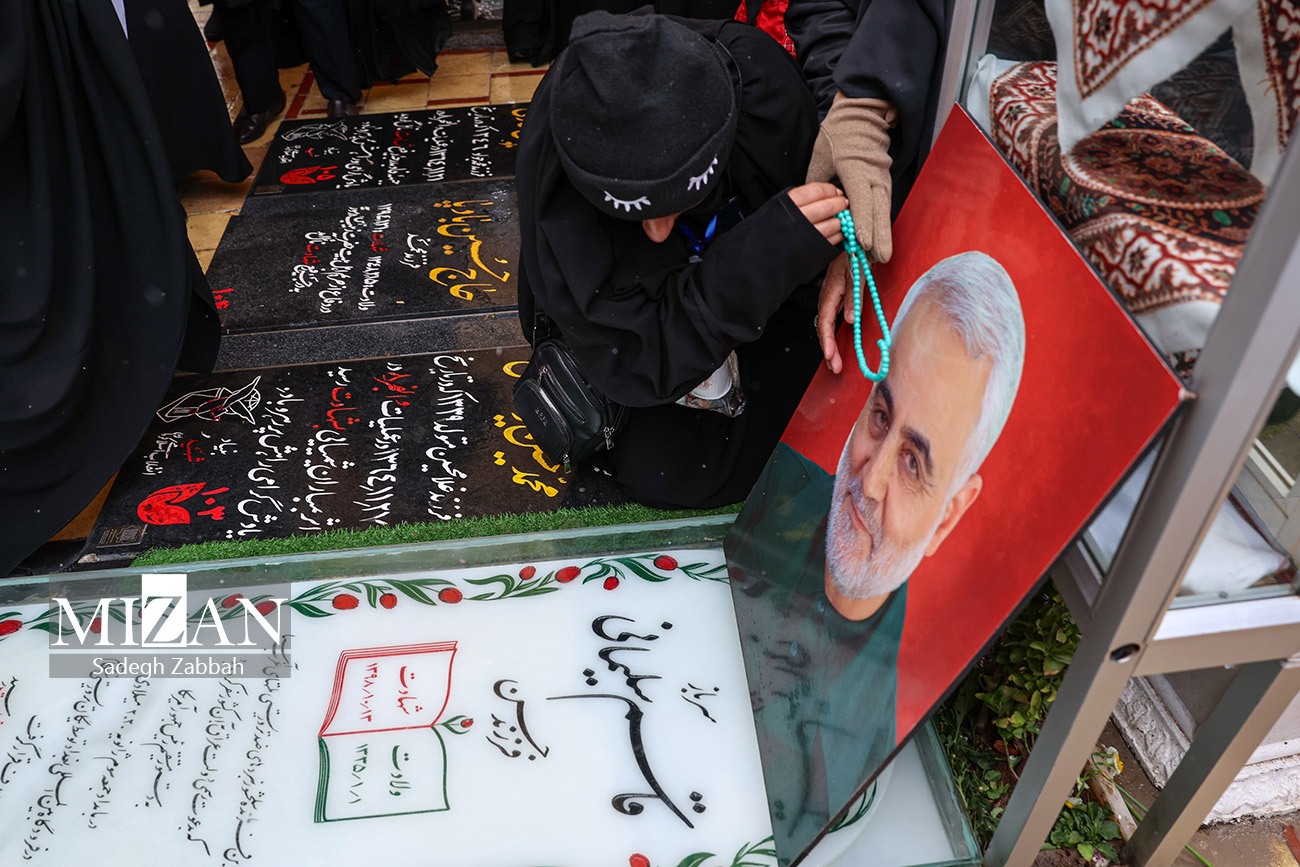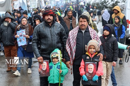 مراسم پنجمین سالروز شهادت سردار شهید حاج قاسم سلیمانی، پنجشنبه (۱۳ دی ۱۴۰۳) با حضور پیاده دهها هزار نفر از زائرانش در هوای برفی مسیر گلزار شهدای کرمان برگزار شد.