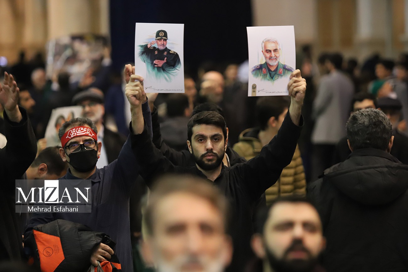 آیین بزرگداشت پنجمین سالگرد شهادت سردار شهید حاج قاسم سلیمانی در مصلی تهران با حضور هزاران نفر از اقشار مختلف مردم تهران و خانواده شهیدان روز پنجشنبه (۱۳ دی ۱۴۰۳) برگزار شد.