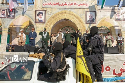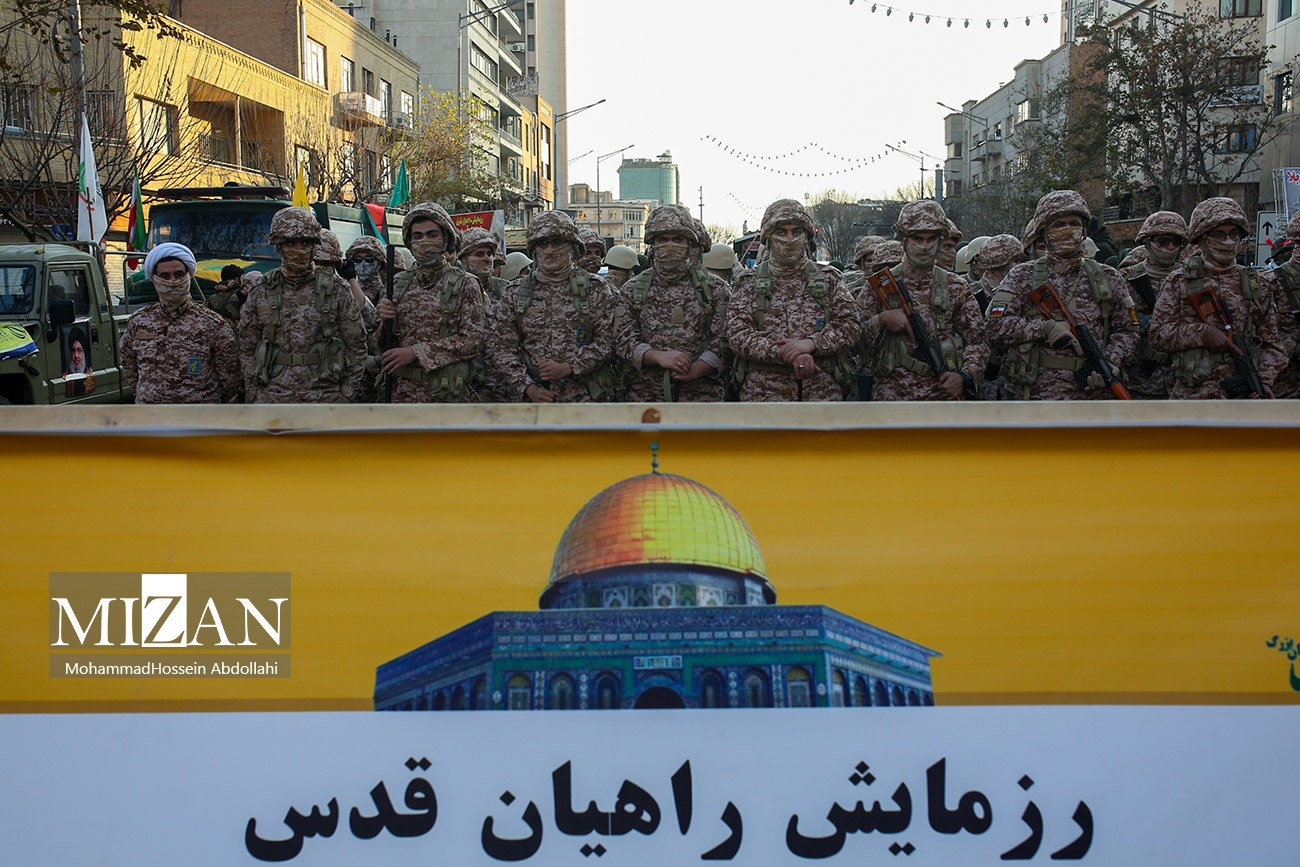 رزمایش بزرگ فرهنگی-رزمی ۱۱۰ هزار نفری «راهیان قدس» با حضور بسیجیان پایتخت، جهادگران، اعضای گردانهای امام حسین (ع)، گردان بیتالمقدس، گردان امام علی (ع) و همچنین گردانهای فاتحین به همت سپاه محمد رسولالله (ص) تهران بزرگ، نیروی مقاومت بسیج قوه قضاییه و وزارت دادگستری در قالب رزمایش اقتدار پیامبر اعظم ۱۹ سپاه پاسداران انقلاب اسلامی صبح روز جمعه (۲۱ دی ۱۴۰۳) برگزار شد.