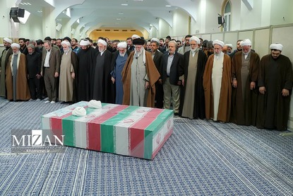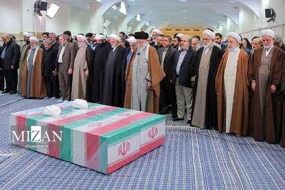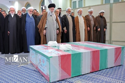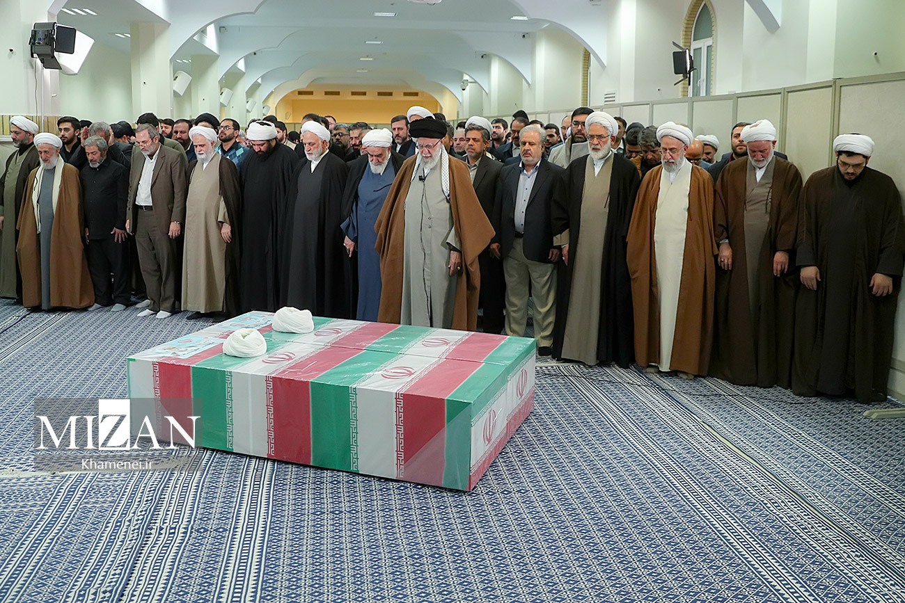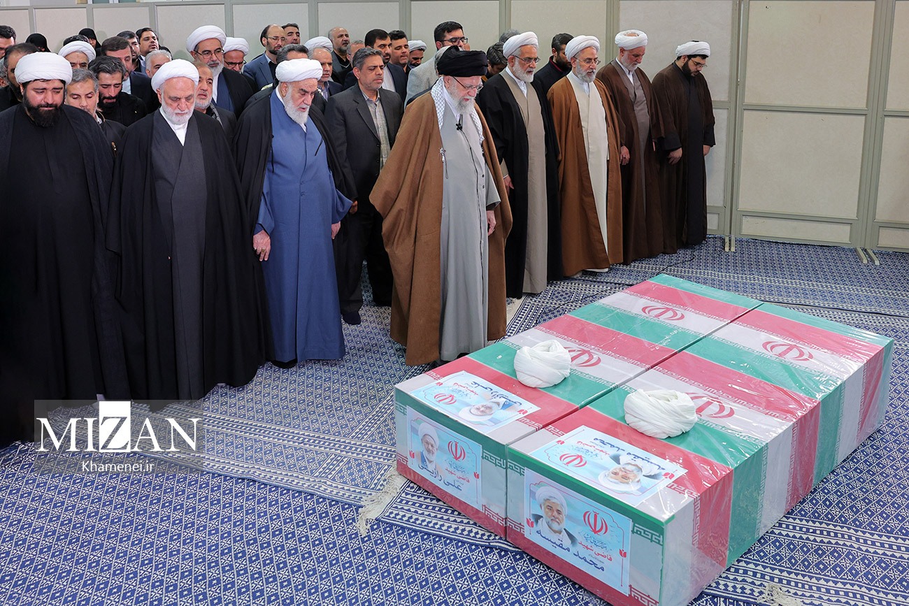 حضرت آیتالله خامنهای رهبر معظم انقلاب اسلامی امشب (یکشنبه) با حضور در حسینیه امام خمینی(ره) بر پیکر دو قاضی شهید، حججاسلام آقایان شیخ علی رازینی و شیخ محمد مقیسه اقامه نماز کردند.