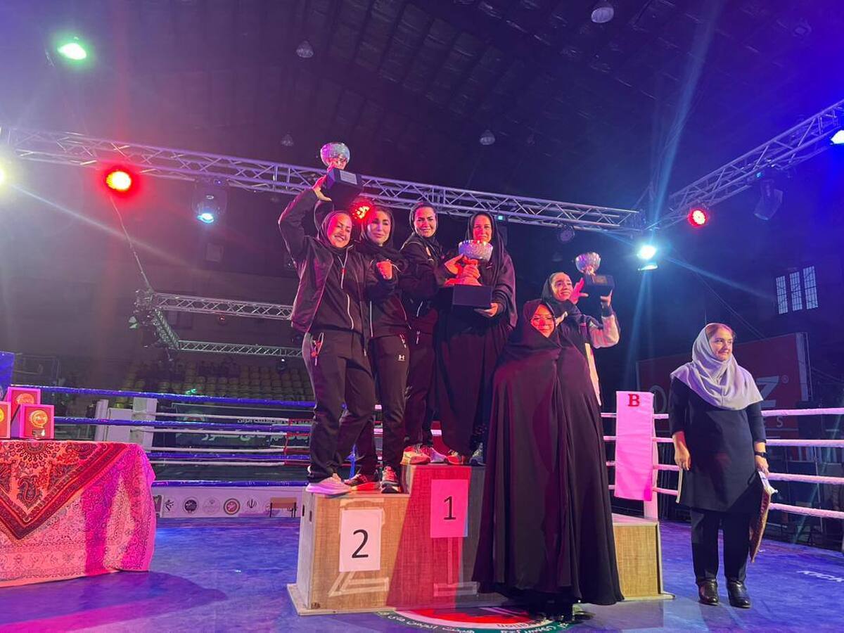 تیم استان تهران (الف) در پایان مسابقات کیک بوکسینگ قهرمانی بانوان کشور، جام قهرمانی را بالای سر برد.