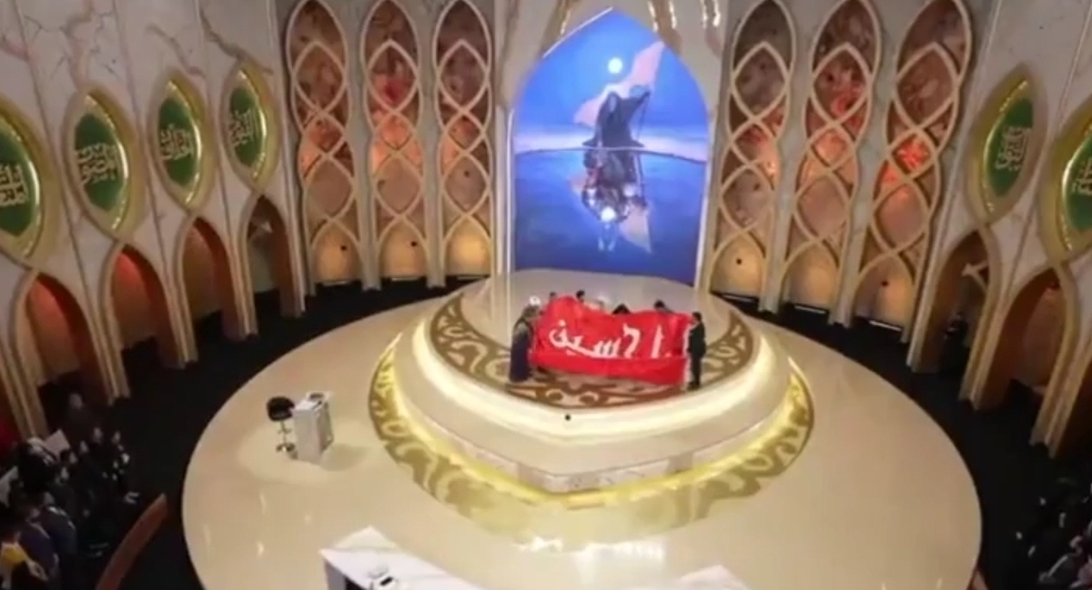 اهدای پرچم مطهر حرم امام حسین (ع) به دختر شهید سید حسن نصرالله