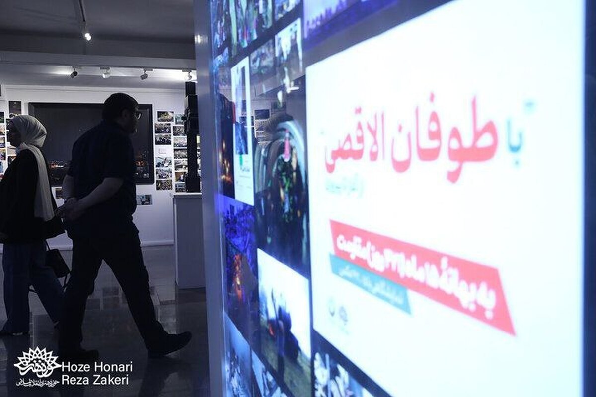 طبق گزارش روابط عمومی حوزه هنری انقلاب اسلامی، نمایشگاه «با طوفان الاقصی از آغاز تا پیروزی نهایی» دارای ۴۸۶ عکس در دو اندازه ۱۶ در ۲۱ و ۱۰۰ در ۱۵۰ سانتیمتر است که توسط عکاسان بینالمللی از آغاز عملیات طوفان الاقصی ثبت شدهاند.