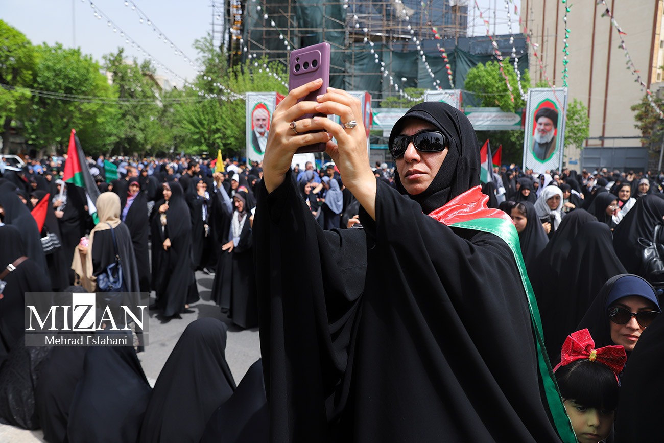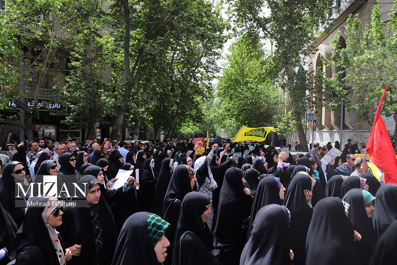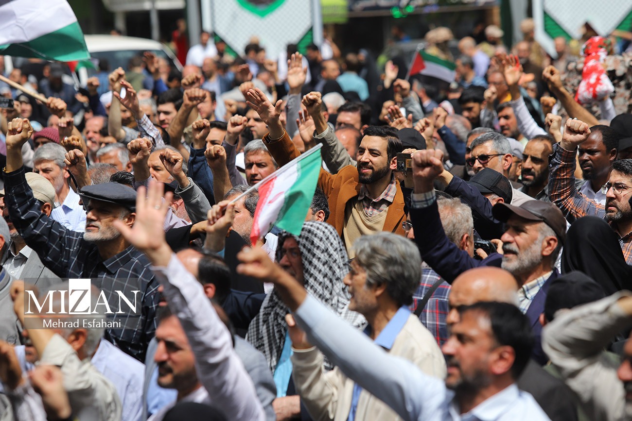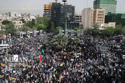 مردم تهران صبح روز چهارشنبه (۲۰ فروردین ۱۴۰۴) با تجمع در میدان فلسطین از مردم غزه در مقابل جنایات رژیم صهیونیستی حمایت کردند.