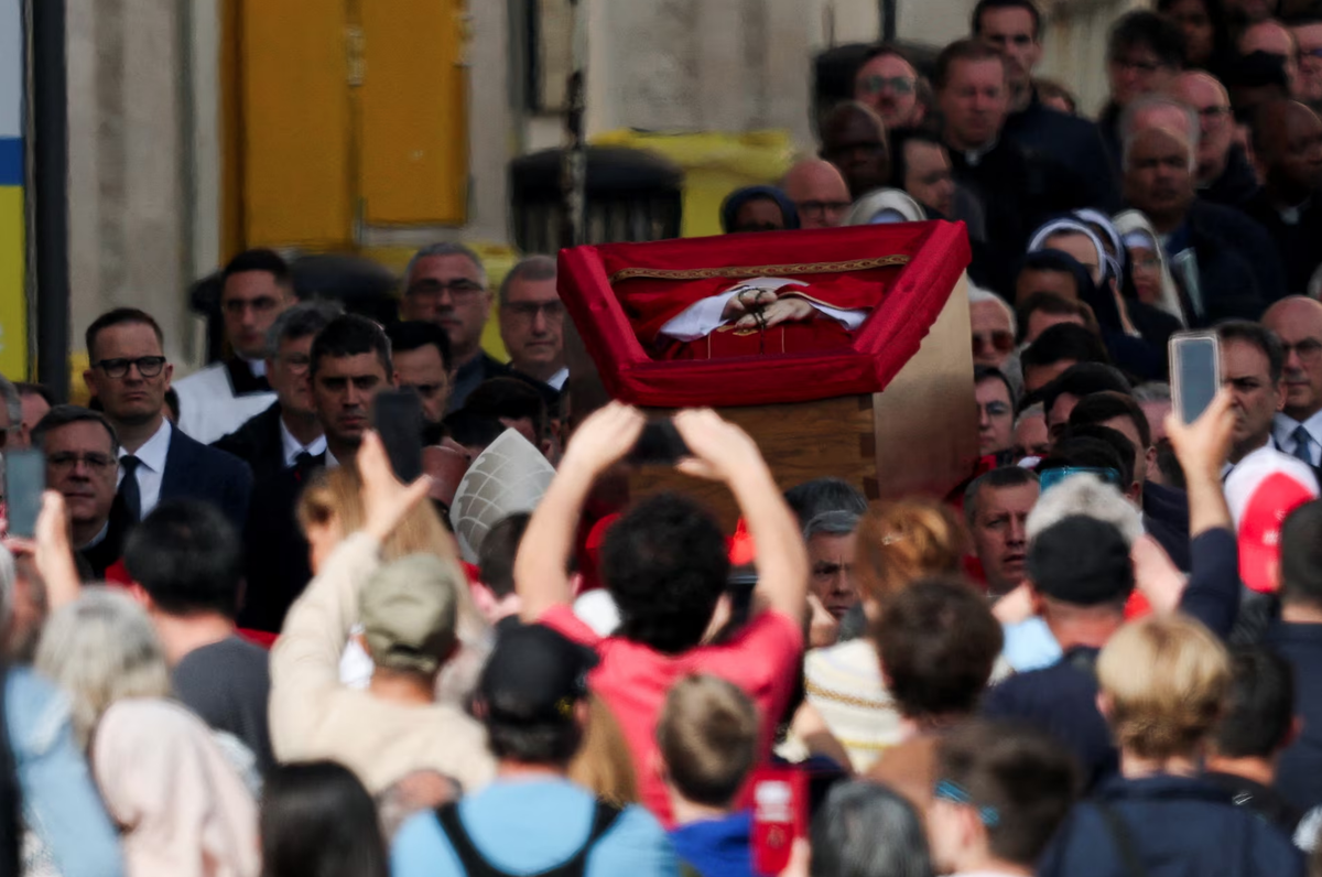 مراسم تشییع پیکر پاپ فرانسیس به کلیسای سنت پیترز برای وداع عموم مردم برای آخرین بار قبل از خاکسپاری وی.
