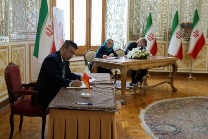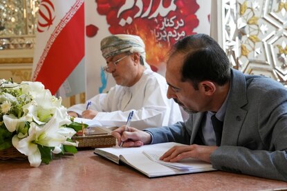 امضای دفتر یادبود قربانیان حادثه انفجار بندر شهید رجائی توسط سفرای خارجی مقیم ایران
