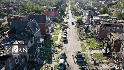 وزش گرد باد و طوفان در آمریکا در دو شهر کنتاکی و میزوری دست کم ۲۵ کشته برجای گذاشت.