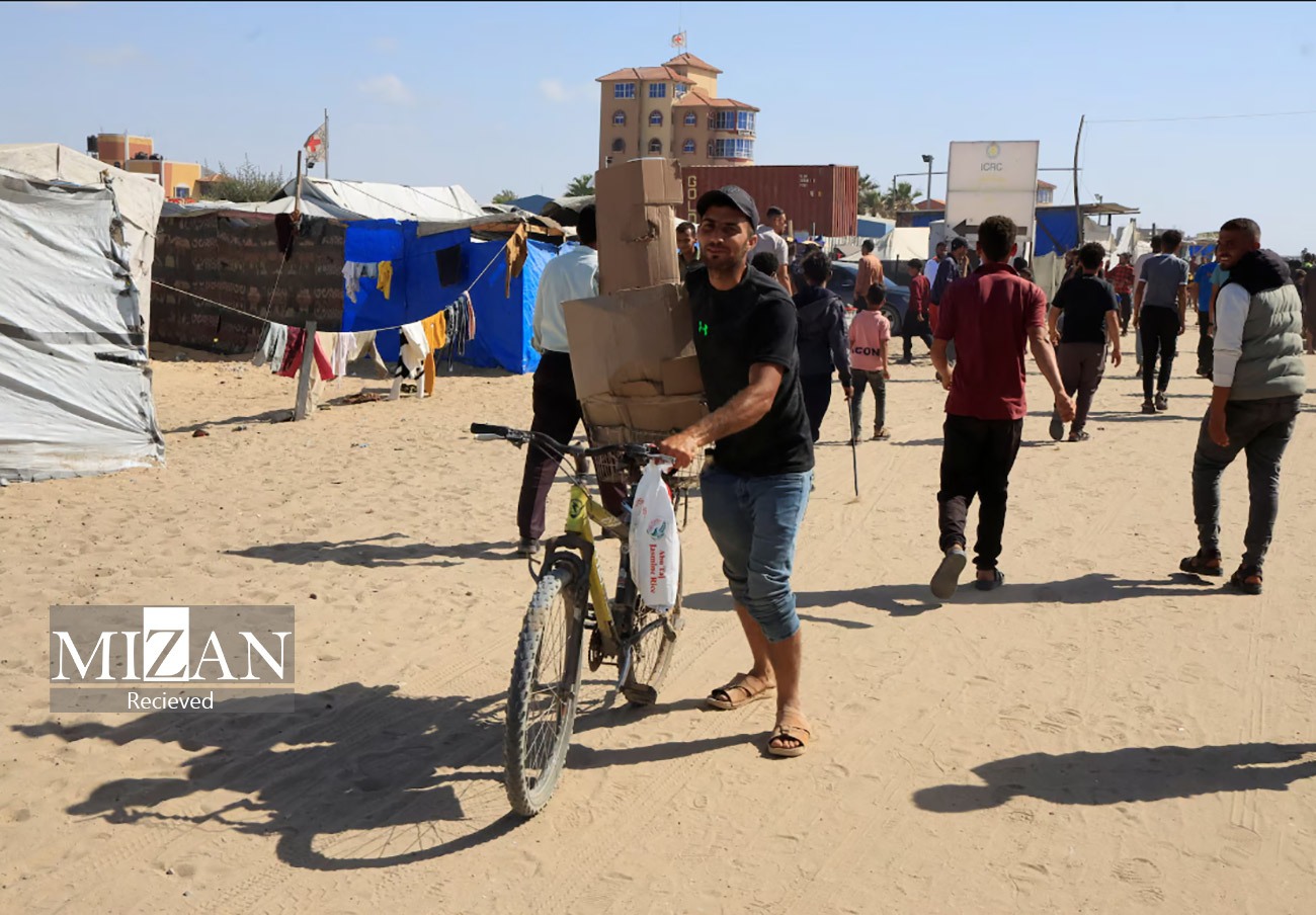 صد‌ها هزار فلسطینی در جنوب رفح برای دریافت کمک‌های بشردوستانه که توسط آمریکا جمع‌آوری شده و به این کشور رسیده در صف‌های انتظار هستند.