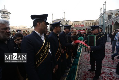 مراسم تعویض پرچم بارگاه حضرت فاطمه معصومه(س)