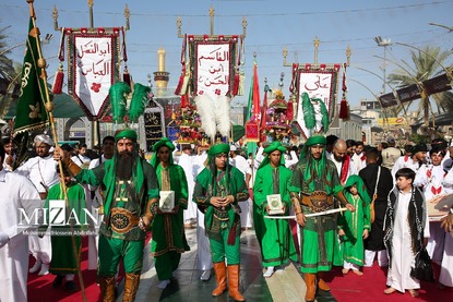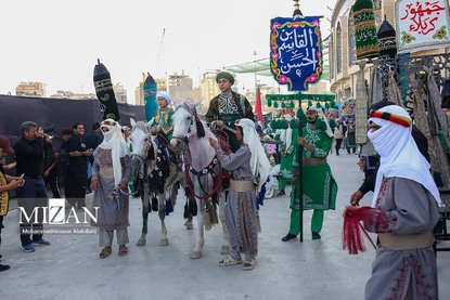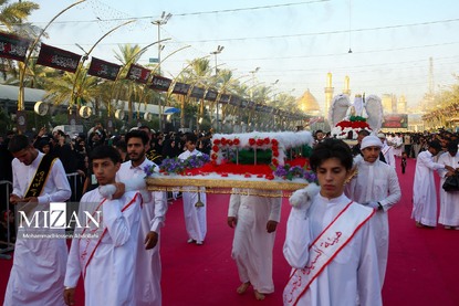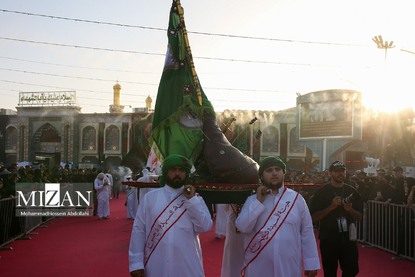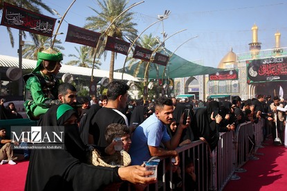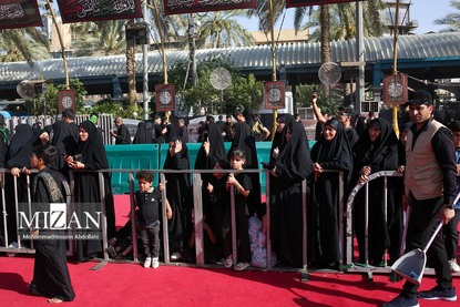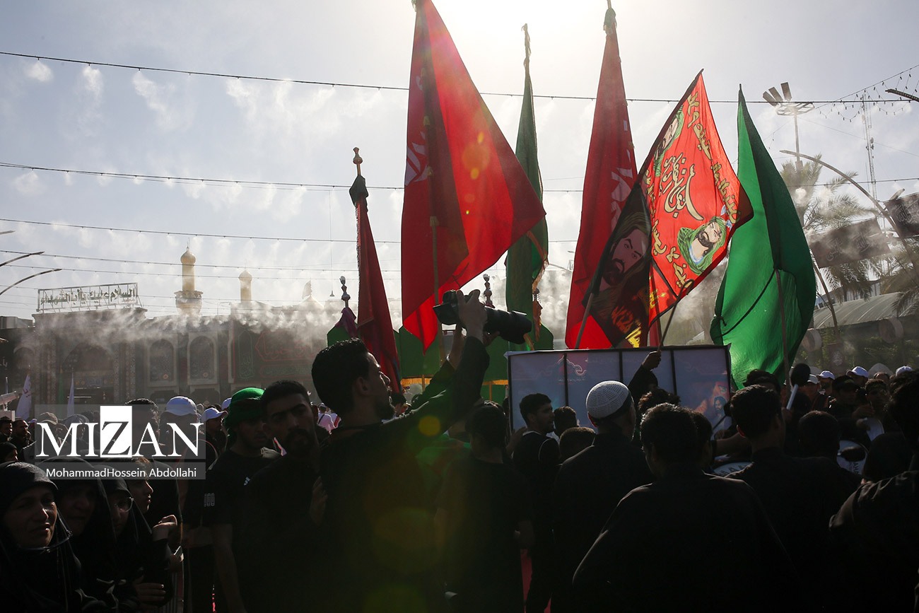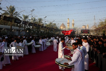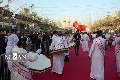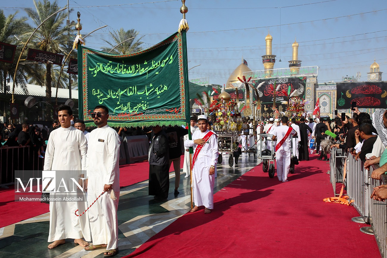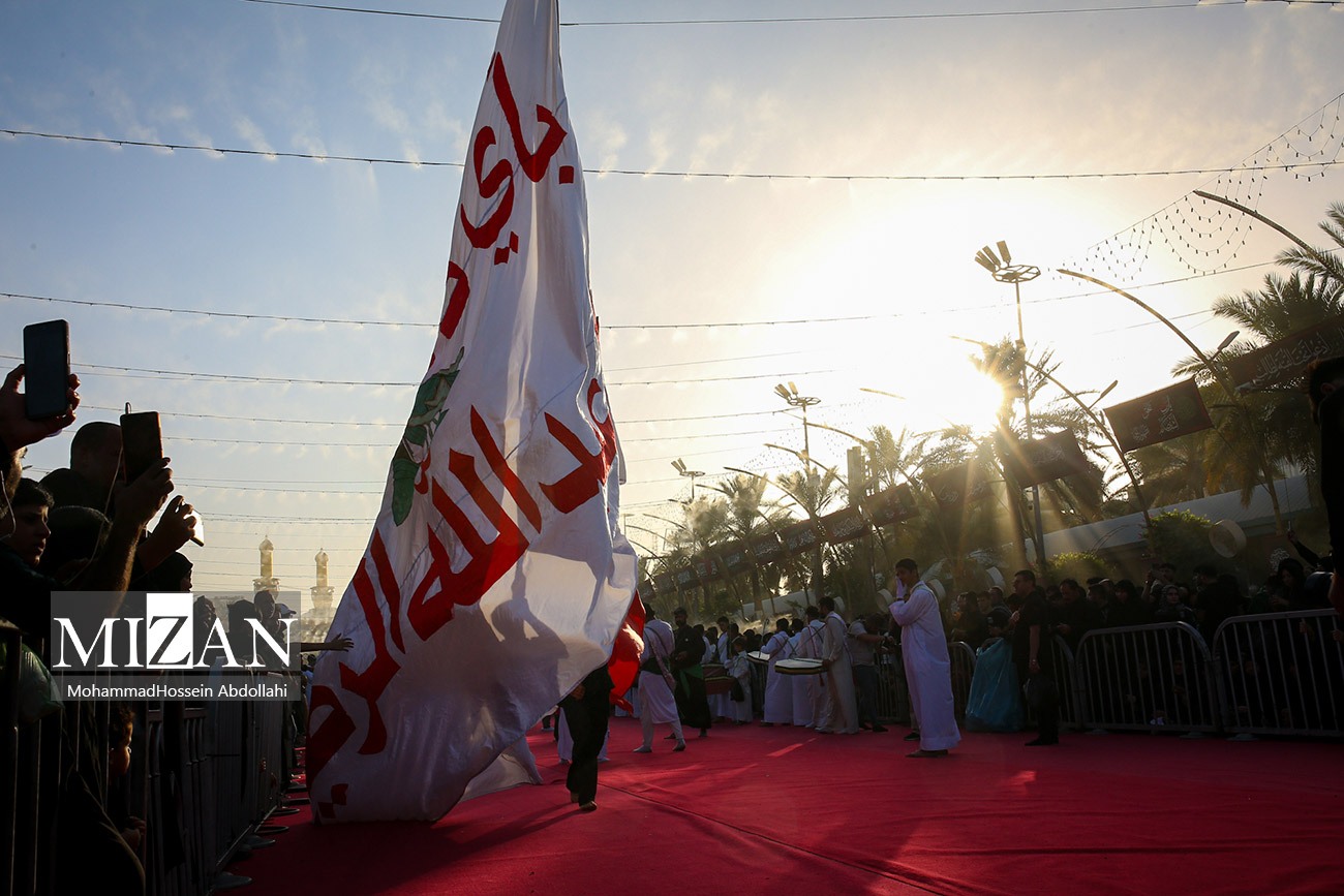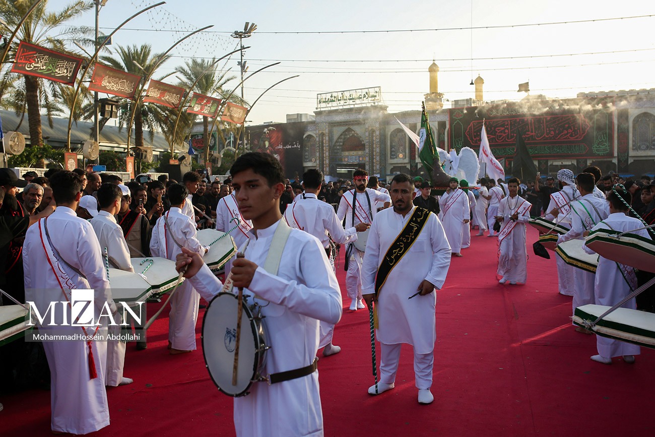 همزمان با تاسوعای حسینی دستههای عزاداری در بین الحرمین کربلا عزاداری کردند.