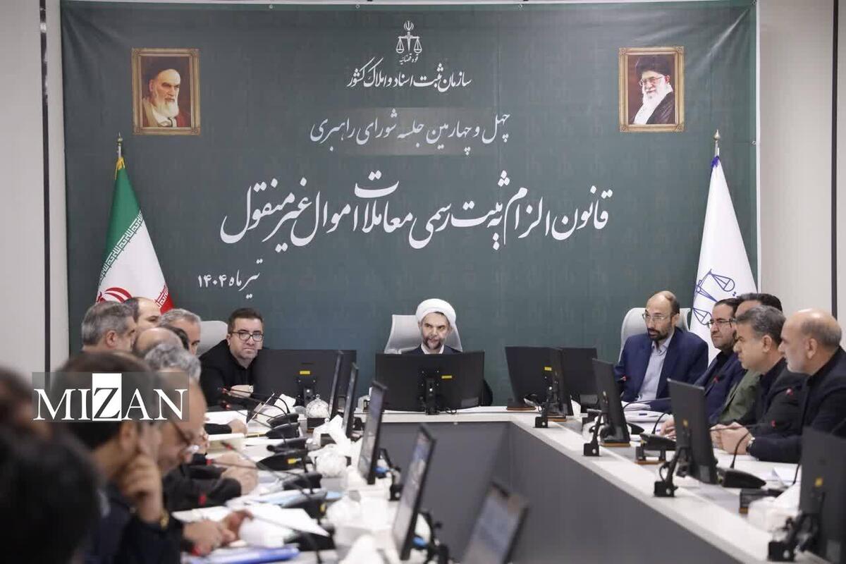 در چهلوچهارمین نشست شورای راهبری قانون الزام به ثبت رسمی معاملات اموال غیرمنقول که با حضور حجتالاسلام والمسلمین خلیلی معاون اول قوه قضاییه، حسن بابایی رئیس سازمان ثبت اسناد و املاک کشور، صاحبکار معاون راهبردی قوه قضاییه، کاظمیفرد رئیس مرکز آمار و فناوری اطلاعات قوه قضاییه و سایر اعضای شورا برگزار شد، آخرین وضعیت اجرای قانون الزام به ثبت رسمی معاملات اموال غیرمنقول مورد بررسی قرار گرفت.