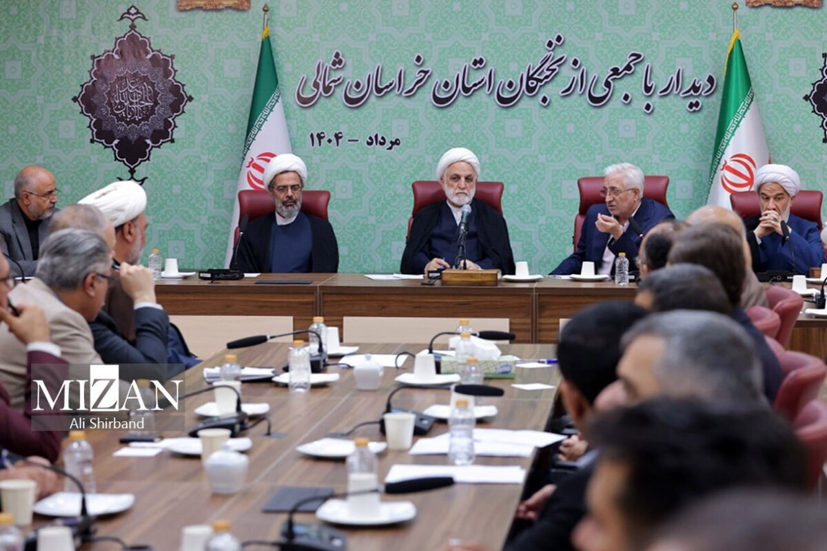 قاضیالقضات در ادامه ضمن اشاره به ضرورت نزدیک کردن دیدگاهها با ابزار گفتوگو جهت غلبه بر مشکلات، گفت: مسئولان استانی در خراسان شمالی و به طور کلی در تمامی استانهای کشور باید نسبت به احصاء و اولویتبندی مسائل و مشکلات استانهای متبوع خود اهتمام داشته باشند و بر مبنای ظرفیتهای موجود در استان نسبت به رفع آن مسائل و مشکلات ساعی و کوشا باشند؛ یکی از حضار در این جمع اشاره کرد که ذخیره مواد معدنی استان خراسان شمالی بالغ بر یک میلیارد و ۱۵۰ میلیون تُن است، اما میزان استحصال از معدن، فقط ۷ میلیون تُن است؛ طبیعتاً ضروری است شما مسئولان و نخبگان استانی با تدابیر عالمانه و تخصصی، میزان استحصال مواد معدنی را ارتقاء دهید و از این طریق به توسعه و آبادانی هر چه بیشتر استان یاری رسانید.