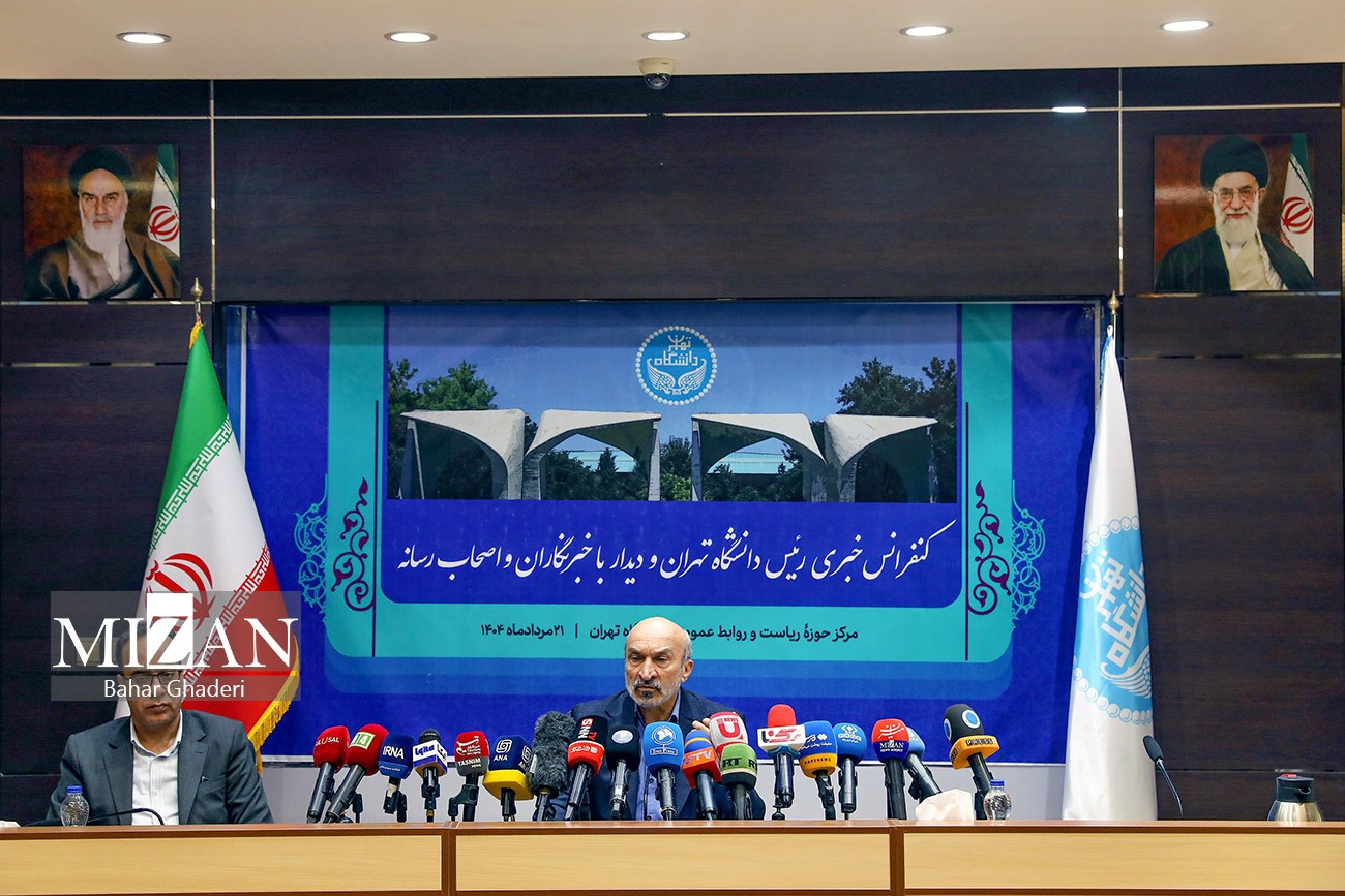 نشست خبری محمدحسین امید رئیس دانشگاه تهران صبح روز سه‌شنبه (۲۱ مرداد ۱۴۰۴) با حضور اصحاب رسانه برگزار شد.