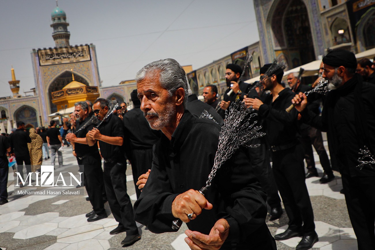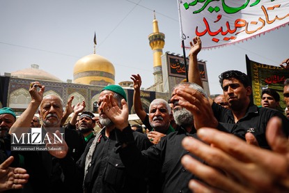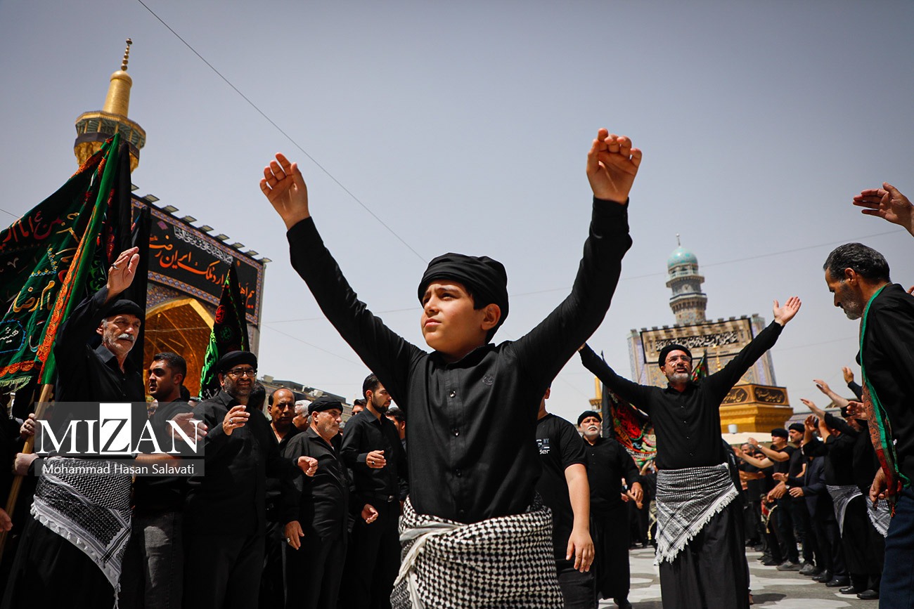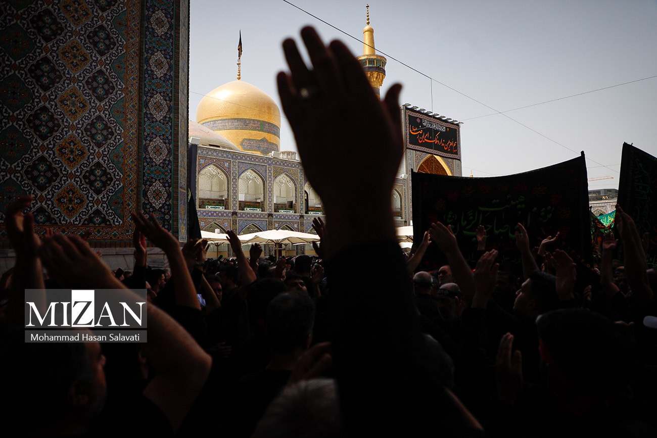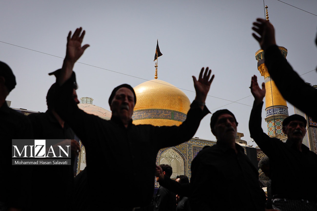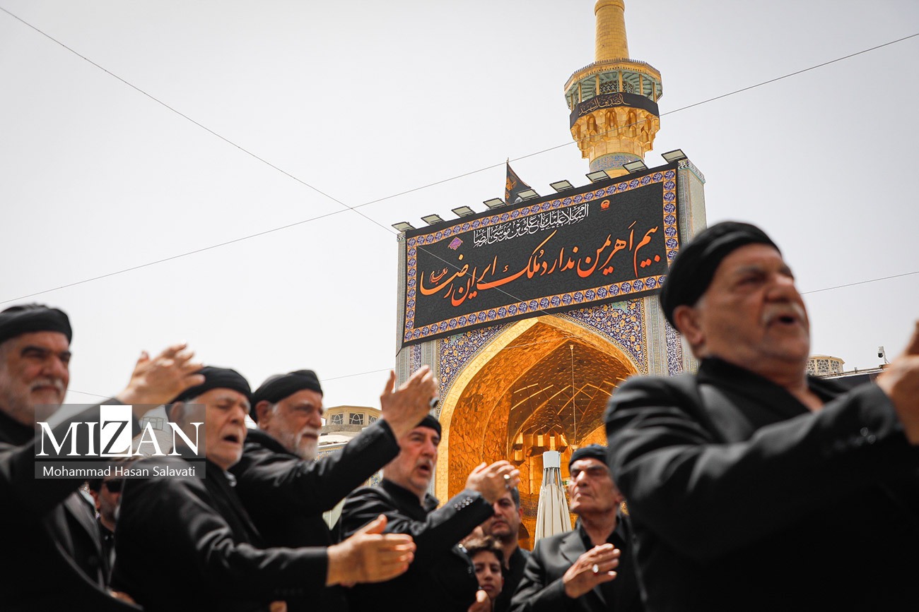 مراسم عزاداری سالروز شهادت امام رضا (ع) با حضور پر شور مردم مشهد، زائران و هیئتهای عزاداری از سراسر ایران در حرم مطهر رضوی برگزار شد.