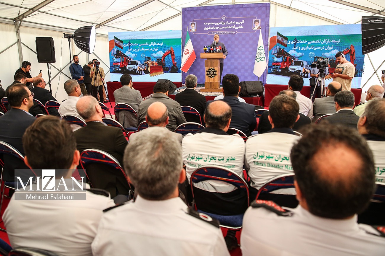 آیین رونمایی از بزرگترین مجموعه ماشینآلات «۳۶۶ ماشین آلات تخصصی خدمات شهری» در قالب یکصد و نودمین پویش امیدوافتخار صبح روز شنبه (۱۲ مهر ۱۴۰۴) با حضور علیرضا زاکانی شهردار تهران، داوود گودرزی معاون خدمات شهری و محیط زیست شهرداری تهران، محمدعلینژاد معاون مالی و اقتصاد شهری شهرداری تهران و برخی مدیران شهری برگزار شد.