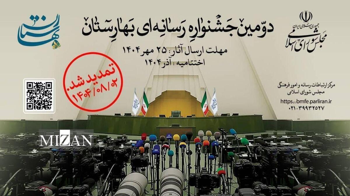 باتوجه‌به استقبال خبرنگاران، عکاسان و فعالان رسانه‌ای کشور از دومین دوره جشنواره رسانه‌ای «بهارستان»، مهلت ارسال آثار به این جشنواره تا دوم آبان‌ماه ۱۴۰۴ تمدید شد.