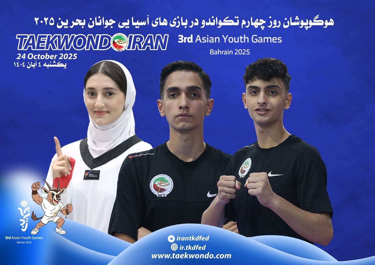 روز پایانی رقابتهای تکواندوی سومین دوره بازیهای آسیایی جوانان در در مرکز نمایشگاه جهانی بحرین صبح امروز (یکشنبه چهارم آبان ماه) با برگزاری مسابقات بخش میکس و انفرادی کیوروگی در مرکز نمایشگاه جهانی بحرین پیگیری شد که حاصل آن کسب یک نشان نقره انفرادی و یک برنز میکس تیمی بود.