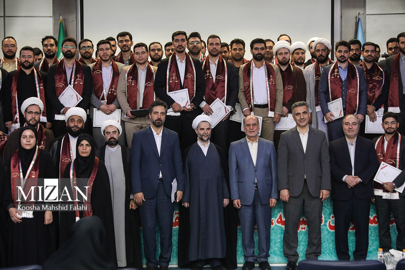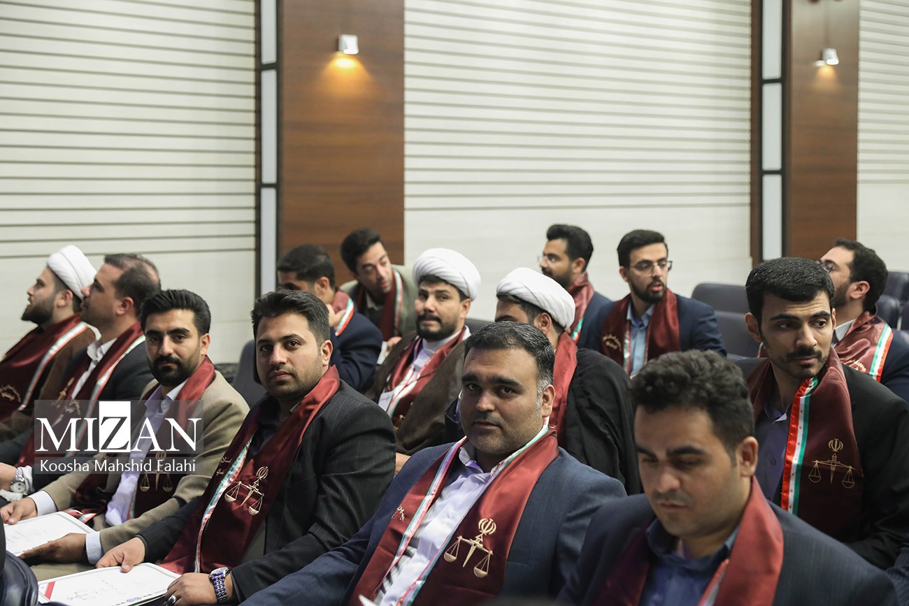 مراسم تحلیف جمعی از کارآموزان قضایی دانشگاه علوم قضایی، دوره ۱۳۴ استان قم و ۳۳ استان فارس با حضور حجت الاسلام والمسلمین خلیلی معاون اول قوه قضاییه، موحدی معاون منابع انسانی و امور فرهنگی قوه قضاییه، سجودی رئیس امور کارگزینی قضات، سیدزاده معاون نظارت بر اختیارات تفویضی و امور اجرایی معاونت اول قوه قضاییه، جوهری مدیرکل آموزش قوه قضاییه در محل ستاد مرکزی قوه قضاییه (سالن هفتم تیر) برگزار شد.