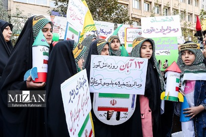 مراسم یوم الله ۱۳ آبان «روز ملی مبارزه با استکبار جهانی» با شعار «متحد و استوار، مقابل استکبار» در بیش از ۹۰۰ شهر کشور صبح امروز برگزار شد.این مراسم در تهران، از میدان فلسطین به سمت لانه جاسوسی سابق آمریکا واقع در خیابان طالقانی برگزار و با اجرای برنامههای مختلف همراه بود.