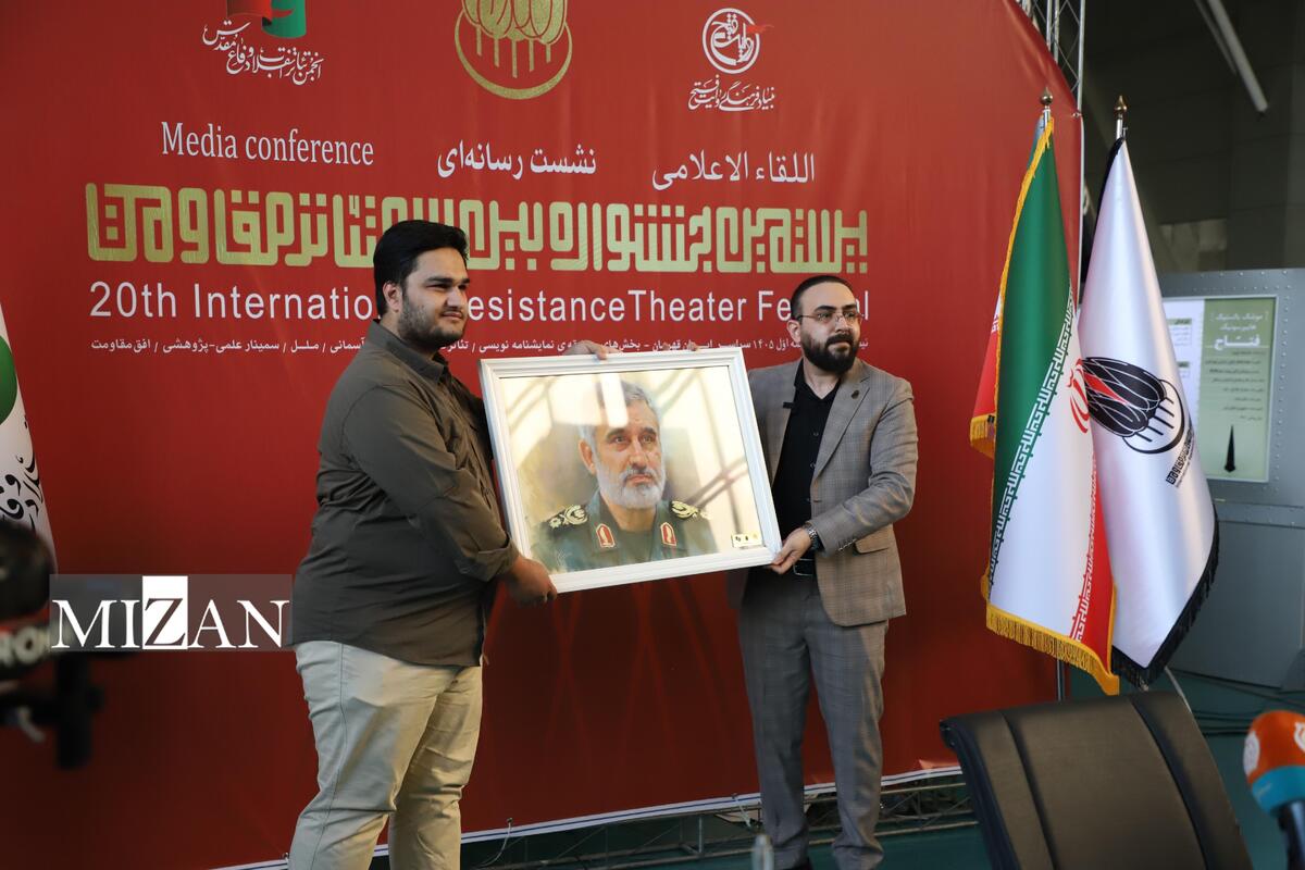 در پایان مراسم رونمایی از پوستر بیستمین جشنواره بینالمللی تئاتر مقاومت با طرحی از محمد روحالامین با حضور محمد کاظمتبار، محسن سلیمانیفارسانی، محمد حبیبی و علیرضا حاجیزاده فرزند شهید حاجیزاده انجام شد.