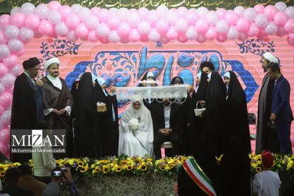 مراسم ازدواج دانشجویی ۷۳۰ زوج دانشگاهی به همت نهاد نمایندگی مقام معظم رهبری در دانشگاهها در شبستان نجمه خاتون آستان مقدس حضرت معصومه (س) برگزار شد.