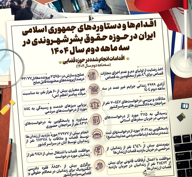 اینفوگرافیک | اقدامات و دستاوردهای جمهوری اسلامی در حوزه حقوق بشر شهروندی در سه ماهه دوم سال ۱۴۰۴