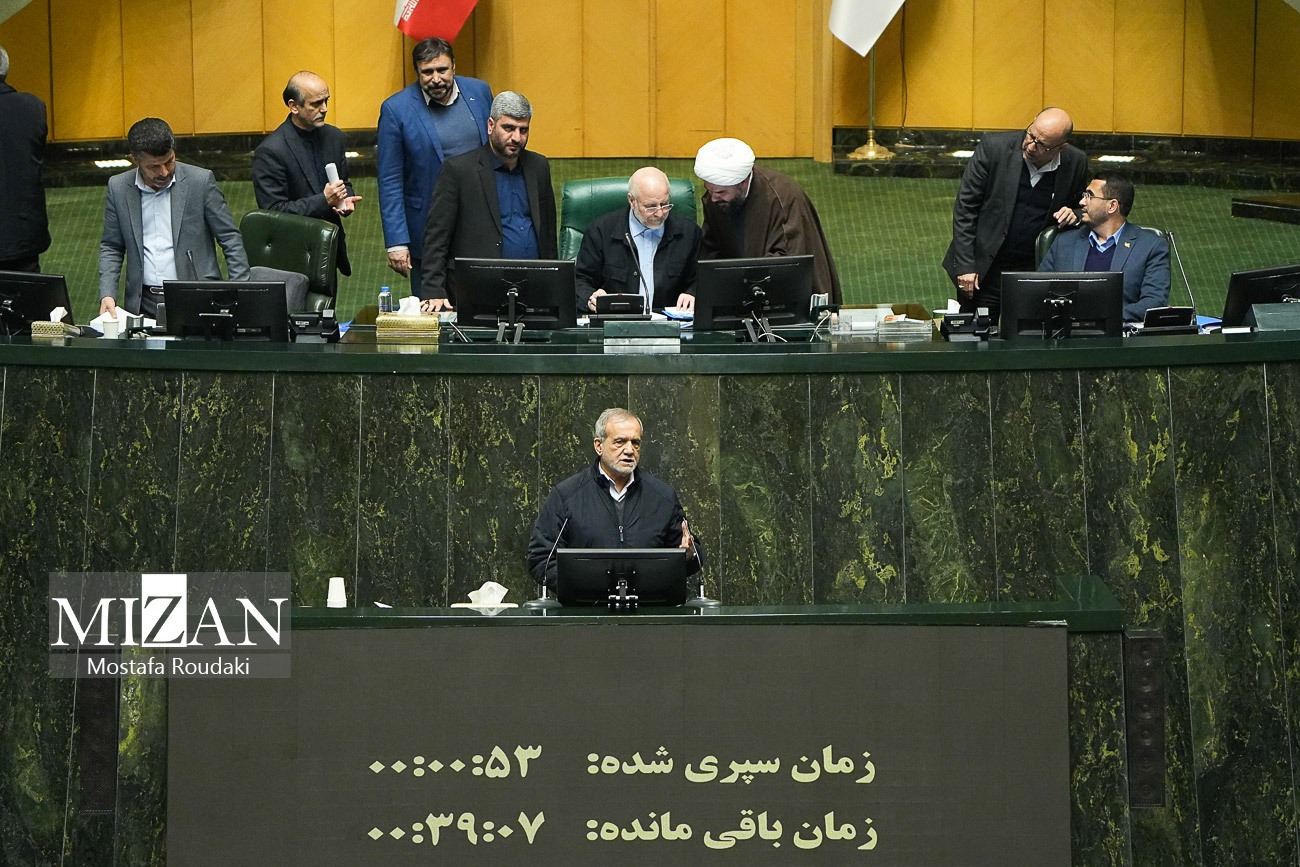 مسعود پزشکیان رئیس جمهور، سه شنبه (۲ دی ۱۴۰۴) برای تقدیم لایحه بودجه سال ۱۴۰۵ و سخنرانی درباره مسائل مختلف کشور در جلسه علنی مجلس شورای اسلامی شرکت کرد.