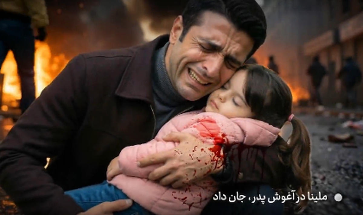 تصویرسازی هوش مصنوعی از لحظهٔ شهادت دختر کوچولویی که با شلیک مستقیم تروریست‌های مسلح در کرمانشاه به شهادت رسید.