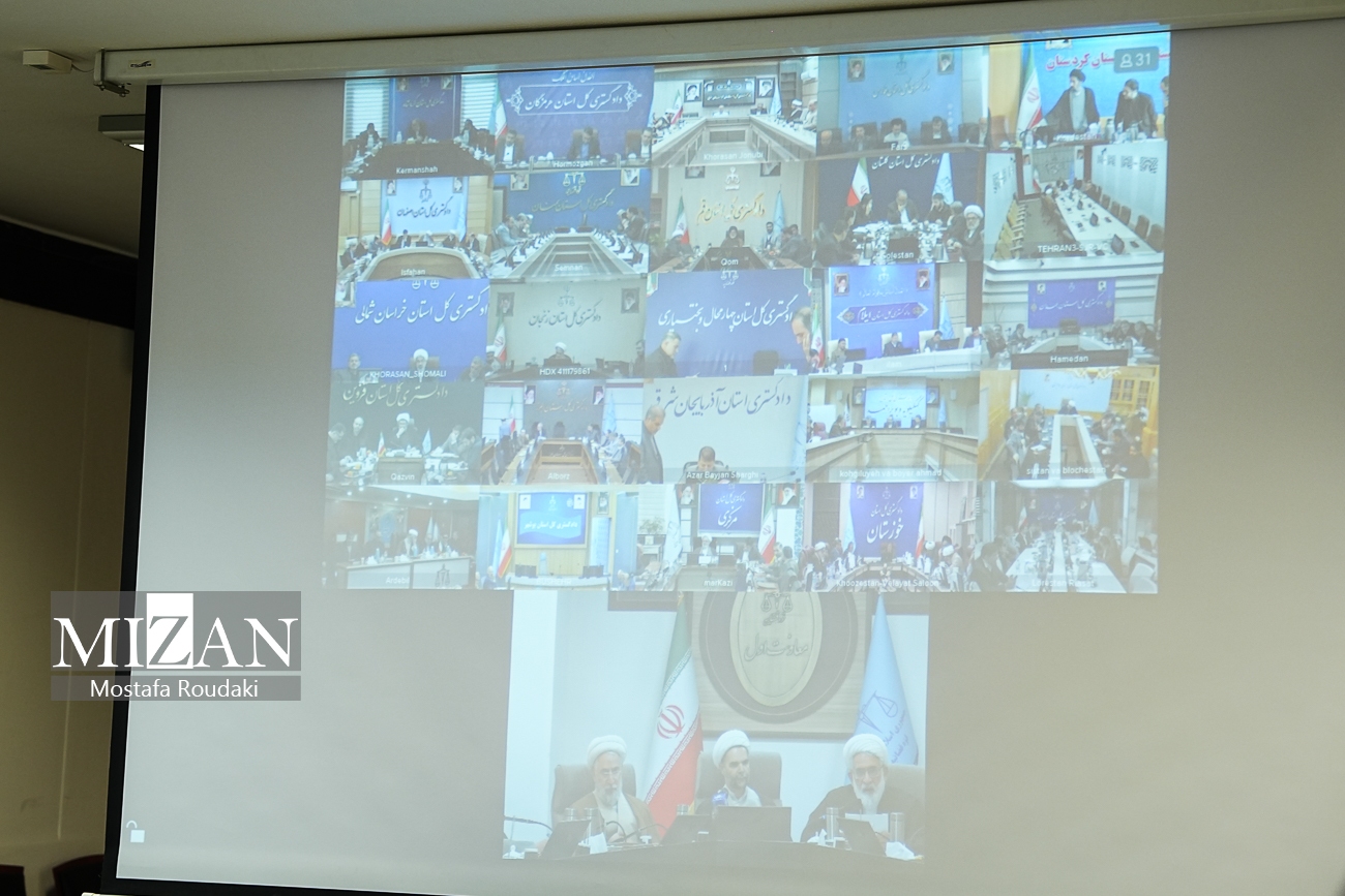 دومین جلسه بررسی عملکرد دادگستری استانها در خصوص اغتشاشات اخیر با حضور حجت الاسلام والمسلمین خلیلی معاون اول قوه قضاییه، حجتالاسلام والمسلمین منتظری رئیس دیوان عالی کشور، حجتالاسلام والمسلمین موحدی آزاد دادستان کل کشور، حجتالاسلام والمسلمین عبداللهی رئیس مرکز حفاظت و اطلاعات قوه قضاییه، معاونان شورای عالی قوه قضاییه و موحد دبیر شورای راهبری معاونان برگزار شد.