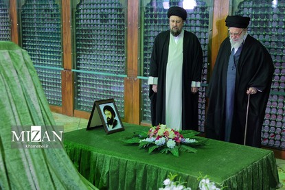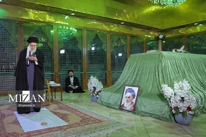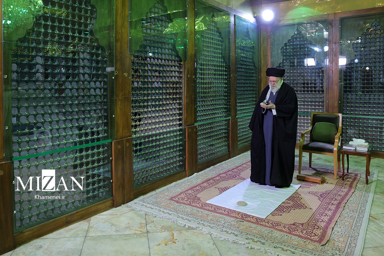 حضرت آیتالله خامنهای ضمن قرائت فاتحه و اقامه نماز در مرقد امام خمینی رحمهالله، برای روح آن امام کبیر و مجاهد و شهدای انقلاب، علوّ درجات مسئلت کردند.