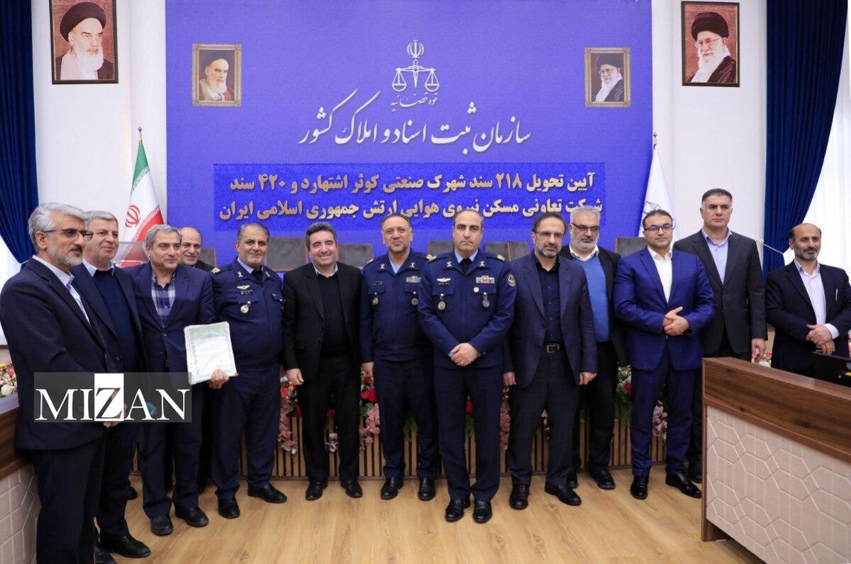 ۲۱۸ سند شهرک صنعتی کوثر اشتهارد و ۴۲۰ سند تعاونی مسکن نیروی هوایی ارتش جمهوری اسلامی صادر شد