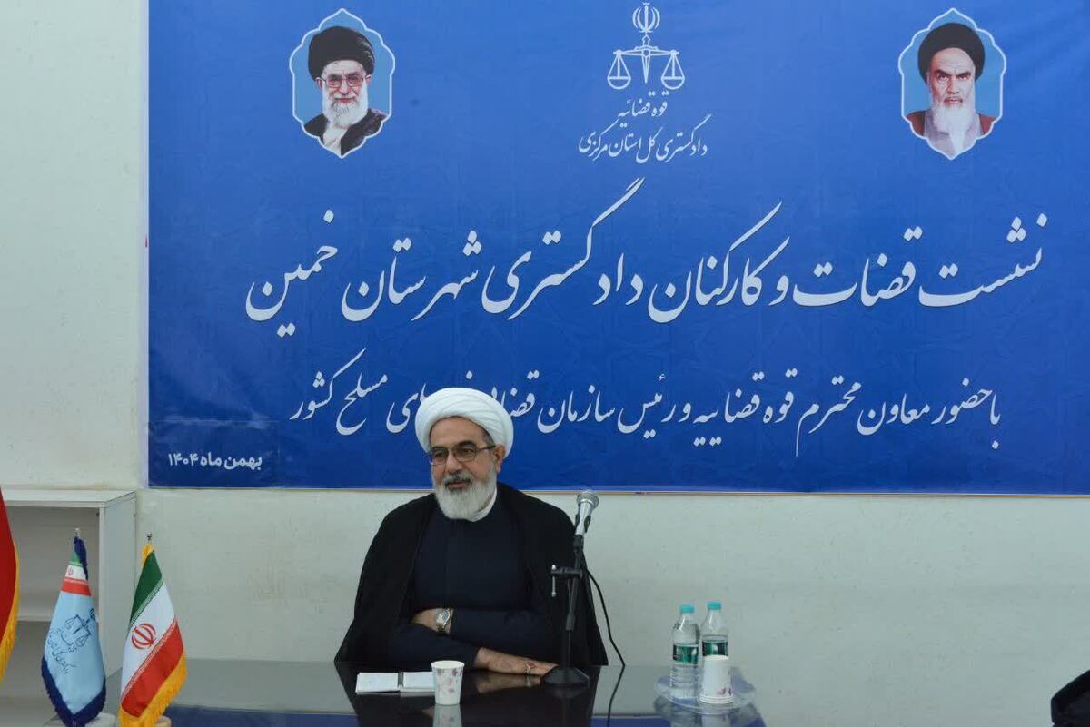 حجتالاسلام والمسلمین پورخاقان رئیس سازمان قضایی نیروهای مسلح کشور در سفر استانی مسئولان قضایی به استان مرکزی در نشستی با قضات و کارکنان دادگستری شهرستان خمین حضور یافت.